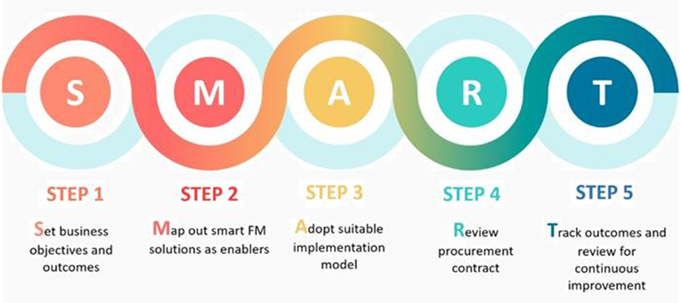 The Guide is applicable to various building types and FM operating models, while being mindful that most buildings have a diverse range of systems. Building Owners, FM Managers, FM Companies (FMCs) and Service / Solution Providers can use this Guide and the 5-Step SMART process as follows: